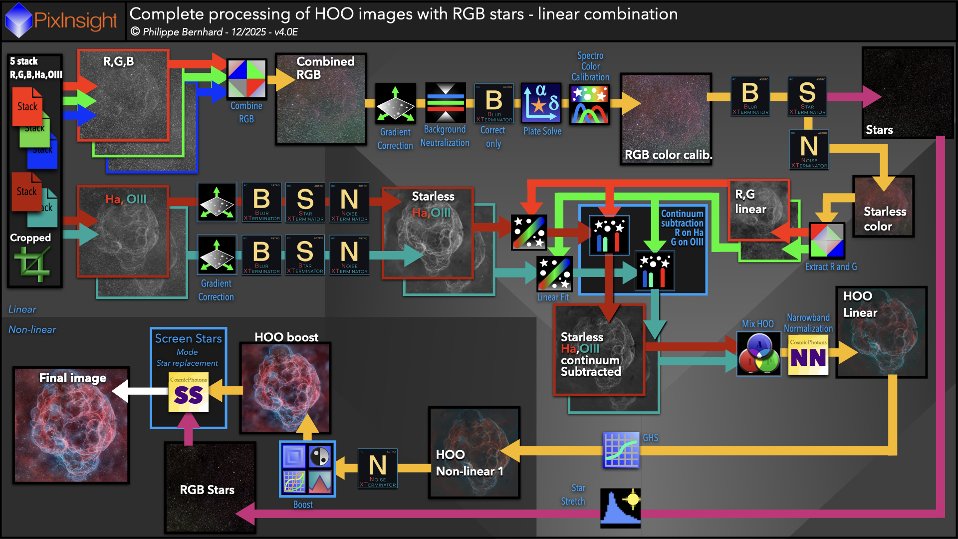 HOO2A-Complete processing of HOO images with RGB stars-linear combination