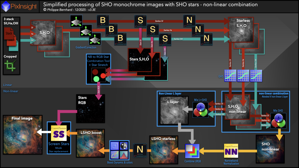 SHO3A-Complete processing of (L)SHO images with RGB stars (non-linear mix)
